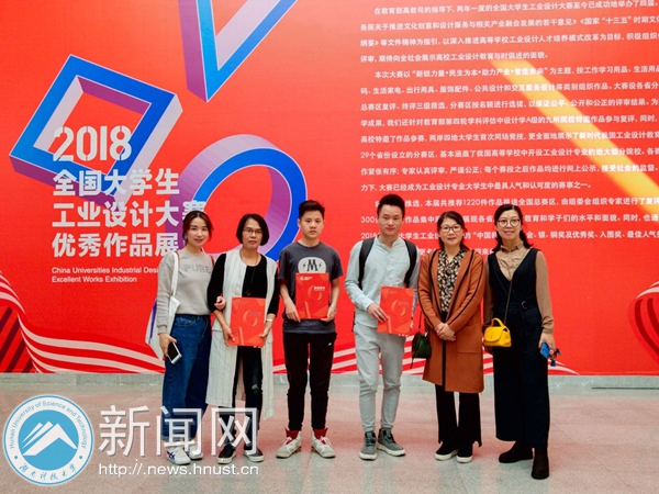 Recently, the Award Ceremony of 2018 China Universities Industrial Design Competition was held at Guangzhou Academy of Fine Arts. HNUST students, from the School of Architecture and Art Design, have won one gold medal, one bronze medal and two excellence awards, of which Mei Linrui, Chen Dongqin and Xiao Boyi, directed by Wu Han, won the gold medal in the national final; Xiao Huaizhong, Yang Qinlin, Shan Zhengping and Liu Shichang, led by Liu Xuemei, won the bronze medal. In addition, Wu Han was presented the “Excellent Guide Teacher Award”.