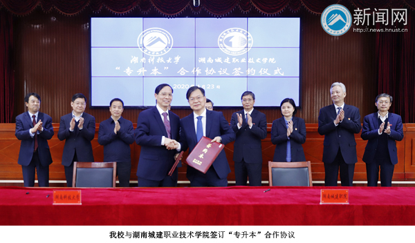 On the afternoon of April 23rd, the cooperation agreement signing ceremony was held in Lide Building. HNUST officially started school-enterprise strategic cooperation with Hunan Construction Engineering Group Co., Ltd (CHCEG) and “College to Undergraduate” cooperation with Hunan Urban Construction College (HNUCC). Cao Jiongfang, Secretary of Xiangtan Municipal Committee, Ye Xinping, Chairman of Hunan Construction Engineering Group, Liu Deshun, Secretary of the Party Committee of HNUST, and Zhu Chuanqu, President of HNUST attended the meeting, which was presided over by Hu Shiqi, Vice President of HNUST.