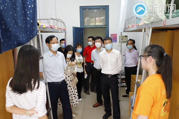 On the afternoon of May 12th, Zhu Chuanqu, President of HNUST, Dai Shugen, Director of the Party Committee Office, Yin Fengyu, Director of Student Affairs Office, and people in charge of School of Foreign Studies and School of Civil Engineering visited the first batch of students returning to school in the 8th and 10th Students’ Dormitory, Zone 8.