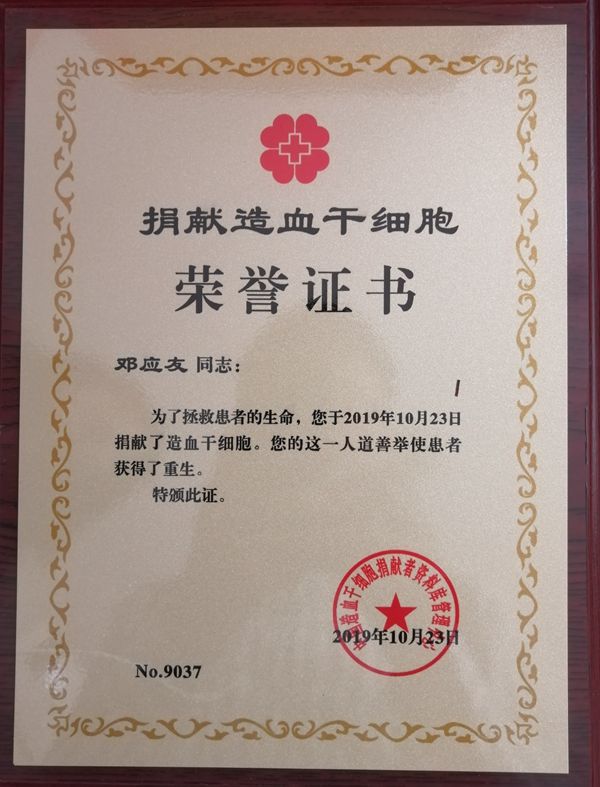 On October 23rd, Deng Yingyou, a student from the School of Arts, donated his hematopoietic stem cell (HSC) to a leukemia patient.