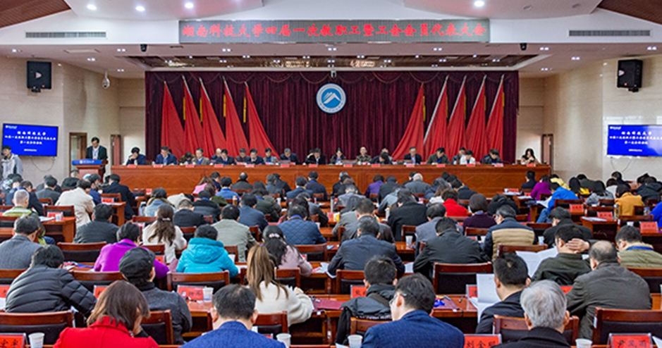 On December 14th, the opening ceremony of the 1st Session of the 4th HNUST Faculty & Labour Union Congresswas grandly held in Lide Building. Wang Changhua, Vice Chairman of Hunan Education Labour Union, attended the congress, and all school leaders, official representatives, specially invited delegates and nonvoting delegates attended the opening ceremony.